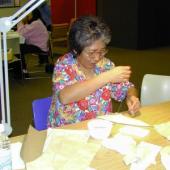 Agnes Mitchell practicing quillwork at the Yellowknife workshop in December 2000.