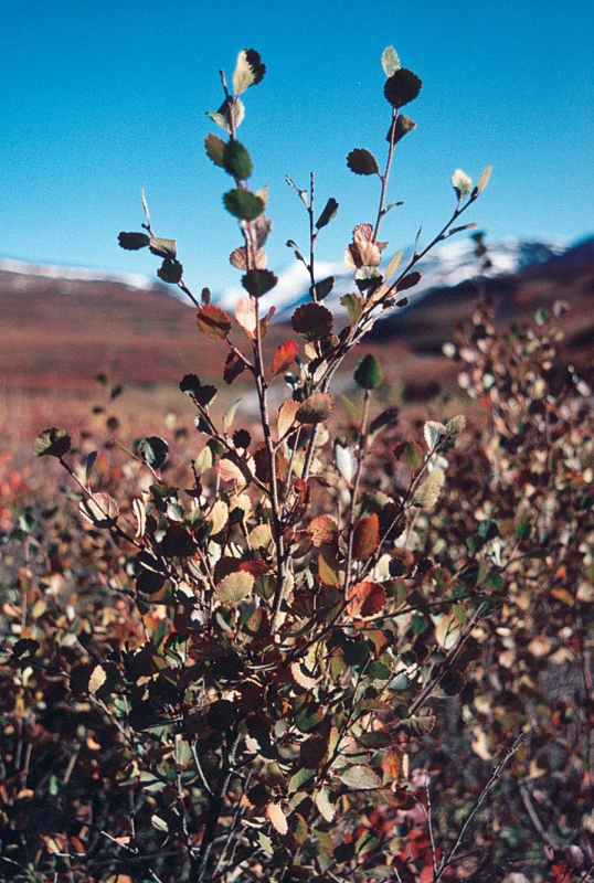 Dwarf birch is widespread in the Gwich’in Settlement Region and is commonly found growing among cranberries and alders (red willow) on muskeg. It is used for flooring in tents. When it is placed among ah’ (spruce boughs) the birch keeps the boughs fresh longer.