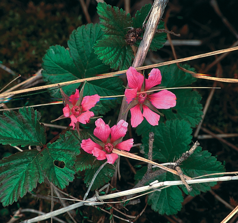 [tall raspberry] Rubus strigosus and [dwarf raspberry] Rubus acaulis