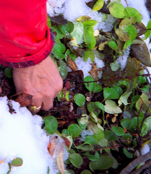...you know where [the wintergreen] patches are and you dig the snow away, brush the last of the snow away from the plants, and you can still pick the leaves.