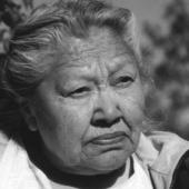 Marka remembers travelling up the Arctic Red River near Snake River with her parents so they could hunt in the mountains when she was a child. She remembers sitting in the sleigh bundled in blankets. When she pushed aside the blanket that covered her face she saw how high they were and far down was a tiny river. The mountains were so steep that the sleigh almost travelled sideways on the slope.